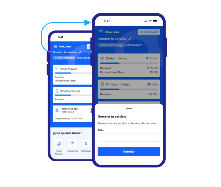 Esta funcionalidad permite al cliente a renombrar su servicio con la finalidad de simplificar la búsqueda de aquellos que tienen más de un servicio contratado.